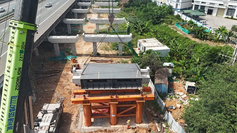 首片鋼箱梁精準架設到支座