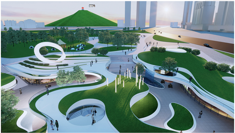 該項目毗鄰道滘站,以水鄉(xiāng)城市為設計理念,結(jié)合軌道場站與周邊濱水環(huán)境,建立城市與綠地無縫銜接、綜合交通充分融合、生活配套完善的立體空間,打造交通、綠化、商業(yè)、居住及教育一體化的新型城市活力中心。